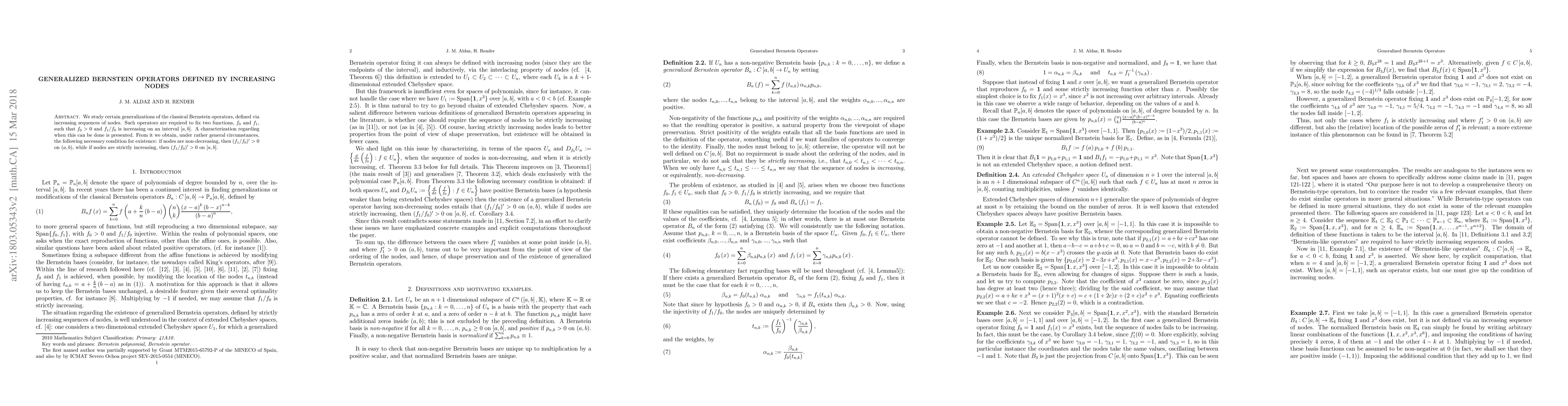 Researchers studied generalized Bernstein operators defined by increasing sequences of nodes, finding necessary conditions for their existence that depend on the nature of the node sequence.