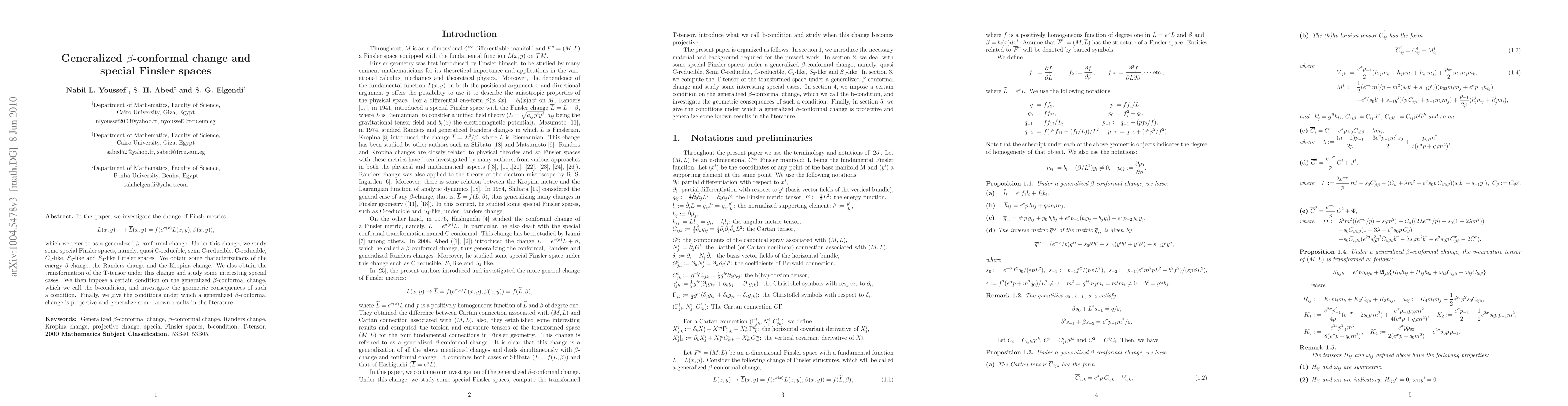 This paper explores the generalized $\beta$-conformal change of Finsler metrics and examines special Finsler spaces, including quasi C-reducible, semi C-reducible, C-reducible, $C_2$-like, $S_3$-like, and $S_4$-like Finsler spaces. It also investigates the transformation of the T-tensor under this change and studies geometric consequences under the b-condition, concluding with conditions for projective changes.