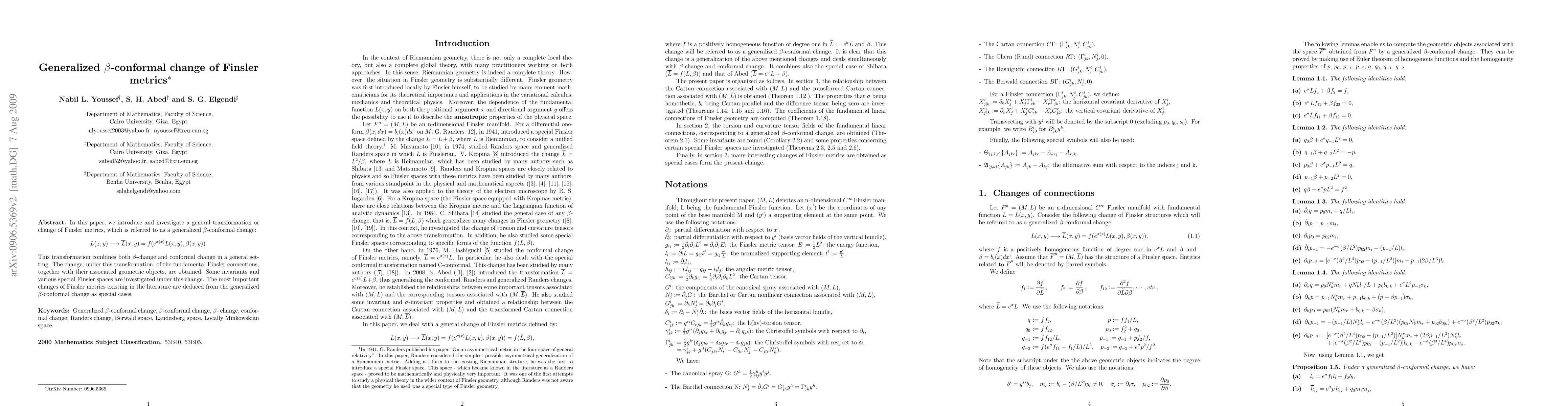 This paper introduces a generalized $\beta$-conformal change of Finsler metrics, transforming $L(x,y)$ to $\overline{L}(x,y)$, and investigates its effects on fundamental Finsler connections and associated geometric objects. It also deduces existing special cases of metric changes from this general transformation.