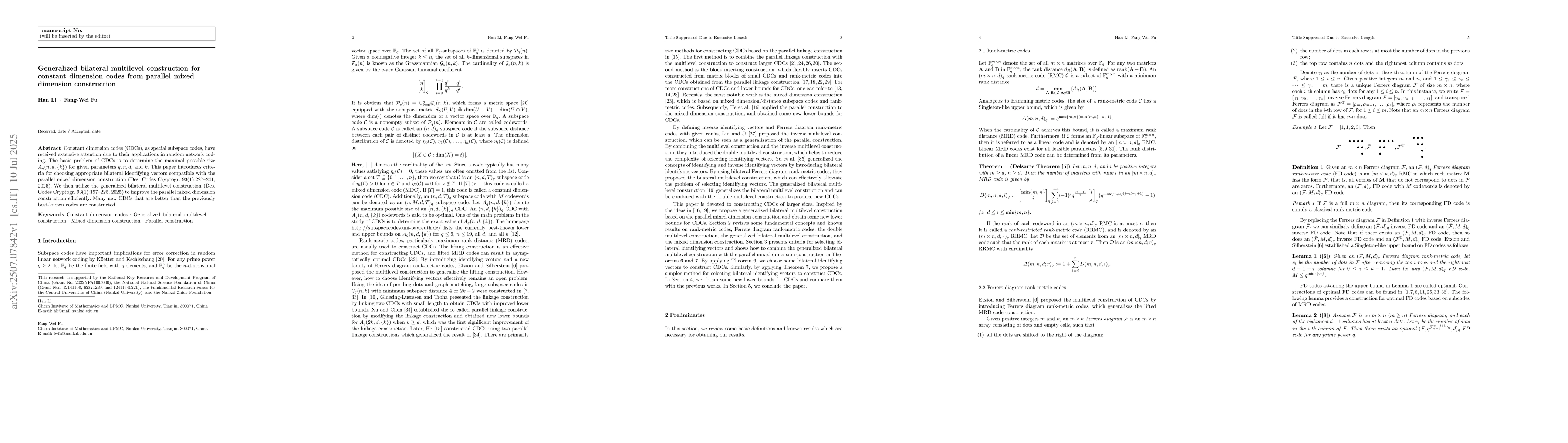 Constant dimension codes (CDCs), as special subspace codes, have received extensive attention due to their applications in random network coding. The basic problem of CDCs is to determine the maximal possible size $A_q(n,d,\{k\})$ for given parameters $q, n, d$, and $k$. This paper introduces criteria for choosing appropriate bilateral identifying vectors compatible with the parallel mixed dimension construction (Des. Codes Cryptogr. 93(1):227--241, 2025). We then utilize the generalized bilateral multilevel construction (Des. Codes Cryptogr. 93(1):197--225, 2025) to improve the parallel mixed dimension construction efficiently. Many new CDCs that are better than the previously best-known codes are constructed.