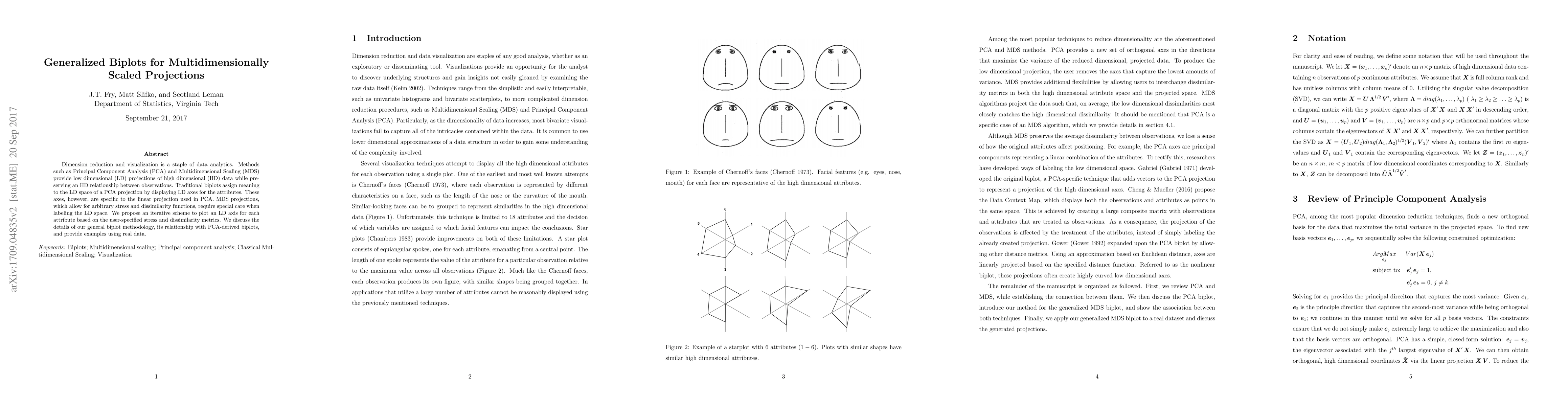 This paper proposes a generalized biplot method for visualizing multidimensional scaled projections, allowing for user-specified stress and dissimilarity metrics, and providing an alternative to traditional PCA-derived biplots.