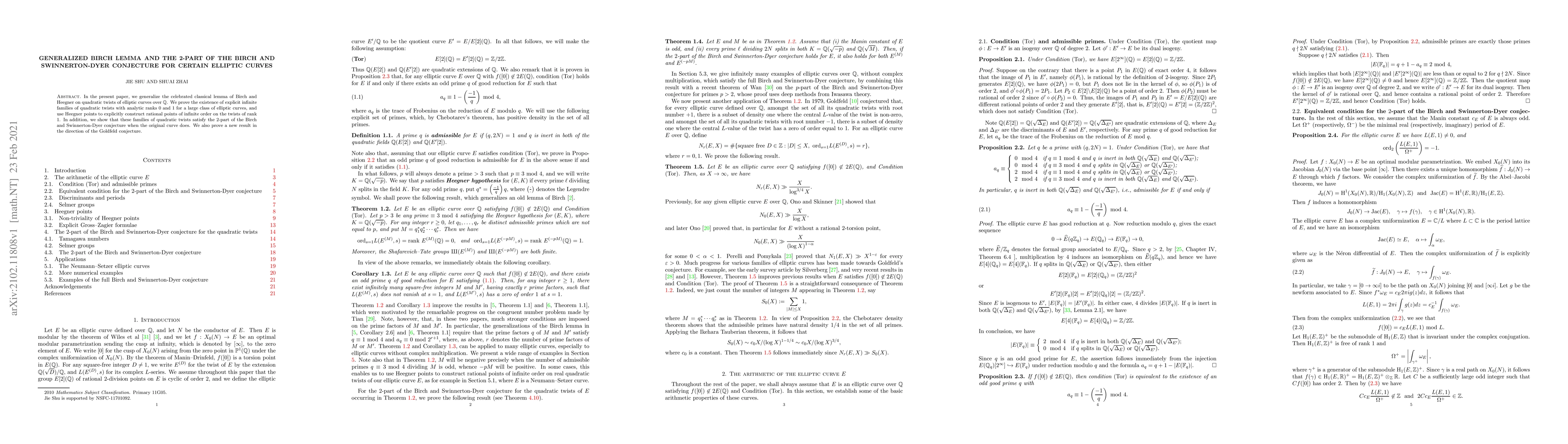 This paper generalizes the Birch lemma for quadratic twists of elliptic curves over $\mathbb{Q}$, proving the existence of infinite families with analytic ranks 0 and 1. It also verifies the 2-part of the Birch and Swinnerton-Dyer conjecture for these twists and provides new insights into the Goldfeld conjecture.