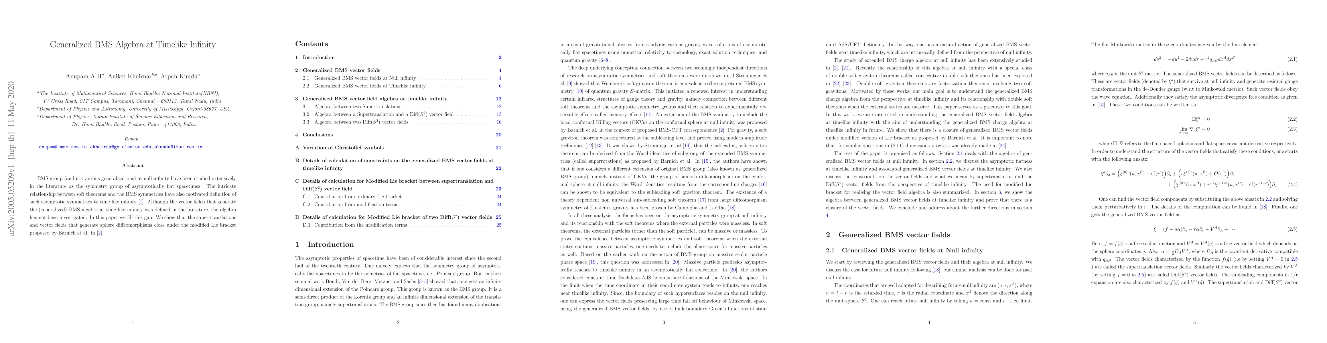This paper investigates the generalized BMS algebra at timelike infinity, demonstrating that the super-translations and sphere diffeomorphisms generate a closed algebra under the modified Lie bracket proposed by Barnich et al. This fills a gap in the literature regarding the algebraic structure of these symmetries.