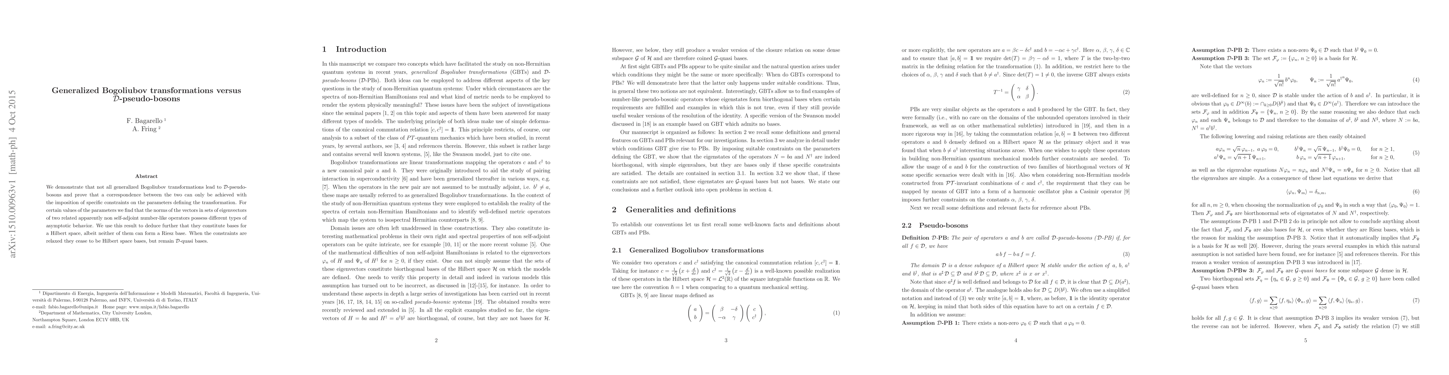Researchers found that not all generalized Bogoliubov transformations produce pseudo-bosons and discovered specific constraints to achieve a correspondence between the two. This study reveals new properties of related operators and their implications for Hilbert space bases.
