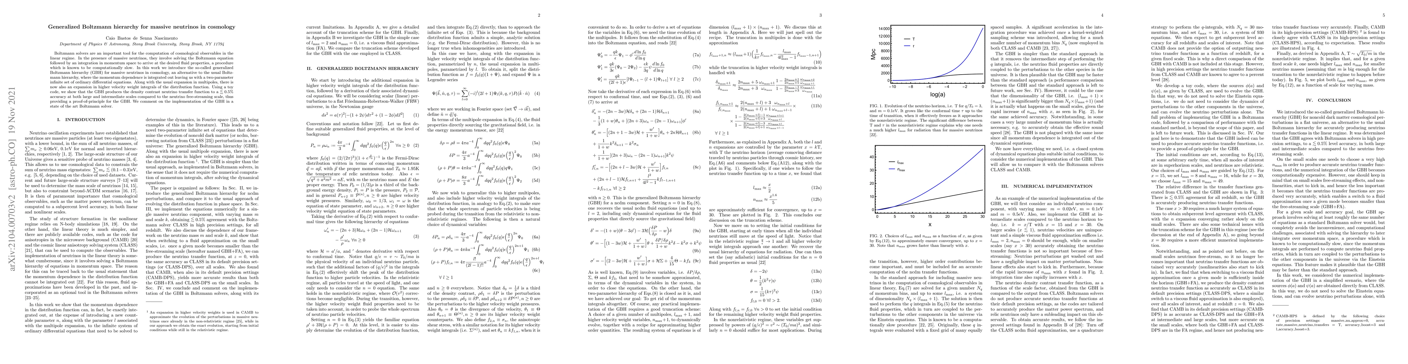 This paper introduces the generalized Boltzmann hierarchy (GBH) as an efficient alternative to the standard Boltzmann hierarchy for computing cosmological observables involving massive neutrinos. The GBH integrates out momentum dependence, resulting in a two-parameter infinite set of ordinary differential equations, which significantly speeds up computations while maintaining accuracy within $\lesssim 0.5\%$.