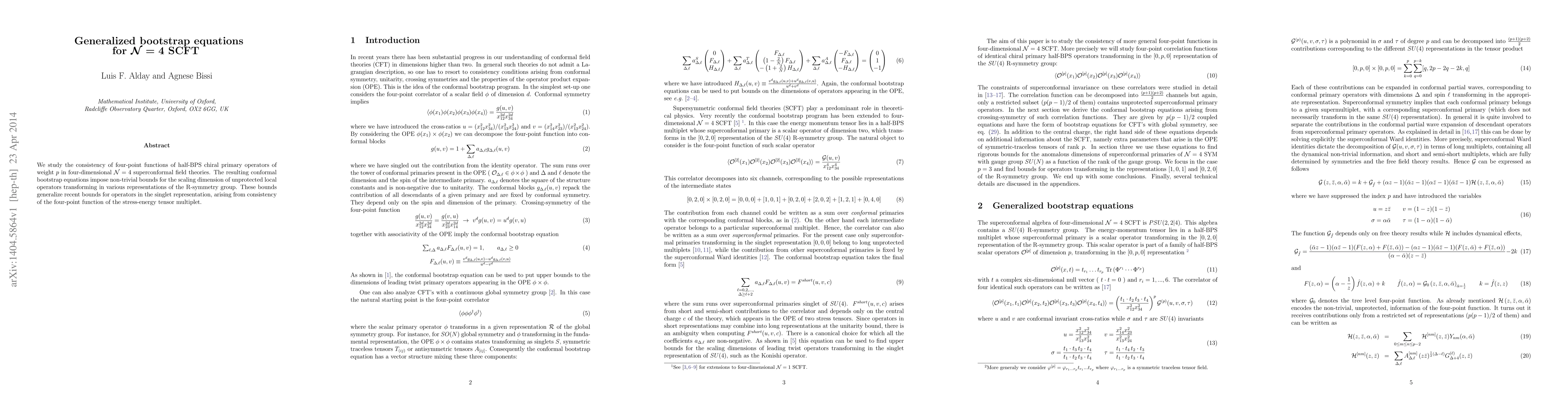 This paper explores the consistency of four-point functions in N=4 superconformal field theories, deriving generalized bootstrap equations that impose non-trivial bounds on the scaling dimensions of half-BPS chiral primary operators, extending previous results for singlet representation operators.