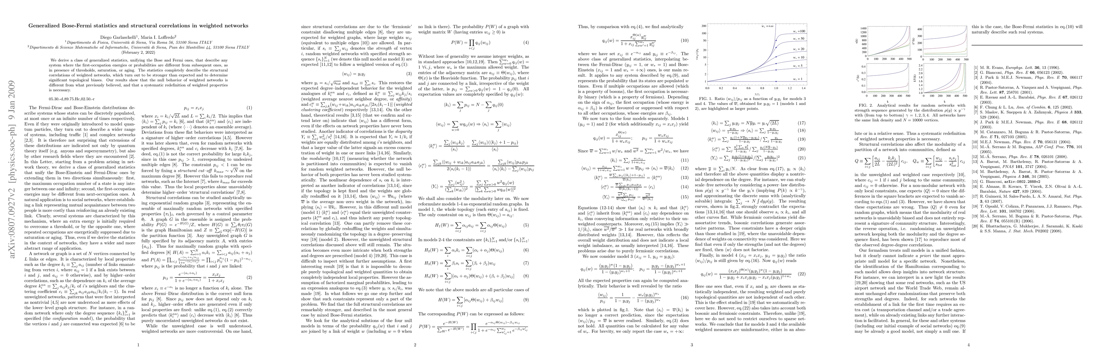 This paper introduces a new class of generalized statistics that unify Bose and Fermi statistics, applicable to systems with threshold effects or saturation. It reveals stronger structural correlations in weighted networks than previously thought, necessitating a redefinition of weighted network properties.