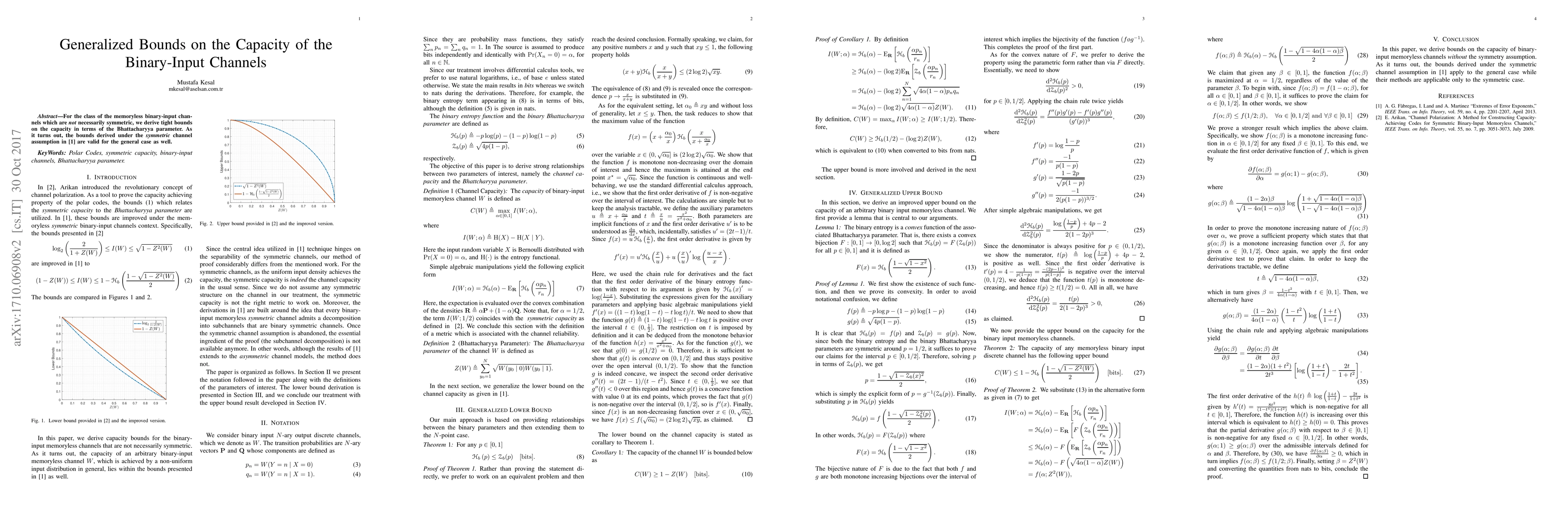 This paper derives tight bounds on the capacity of non-symmetric memoryless binary-input channels using the Bhattacharyya parameter, showing that previously established bounds for symmetric channels also apply to the general case.