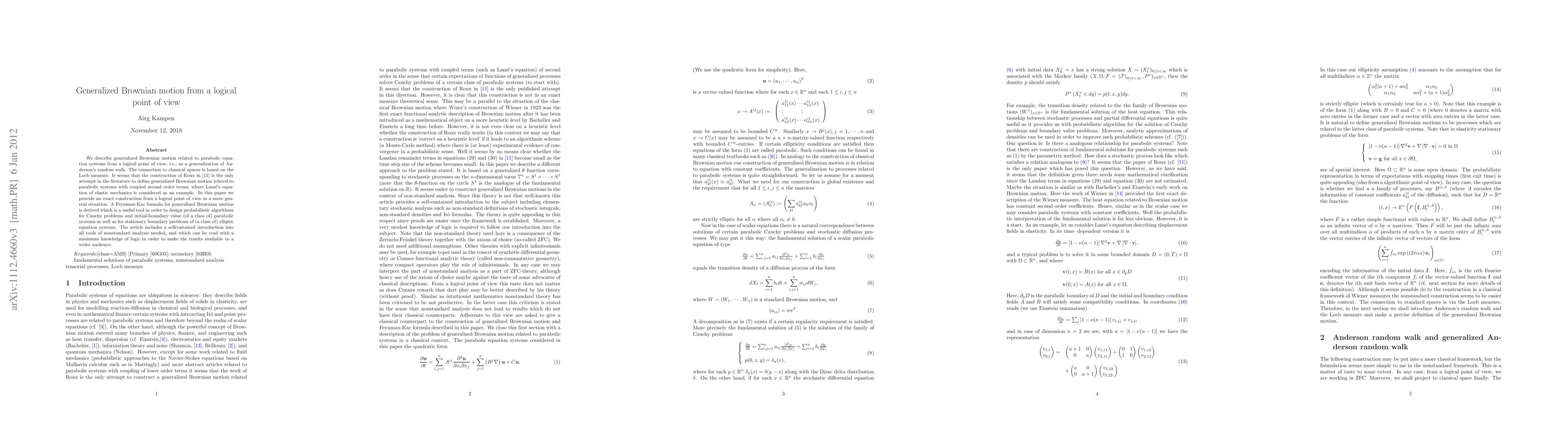 This paper generalizes Brownian motion to parabolic systems with coupled second-order terms using logical methods. It introduces a Feynman-Kac formula for generalized Brownian motion, enabling probabilistic algorithms for solving Cauchy problems and stationary boundary problems of elliptic equation systems.