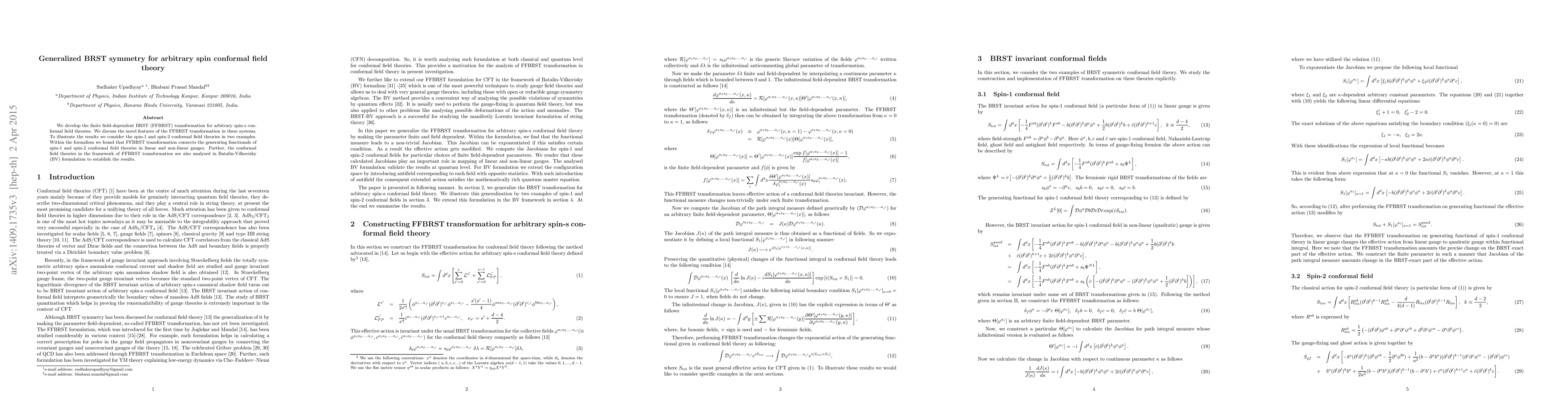 We develop the finite field-dependent BRST (FFBRST) transformation for arbitrary spin-s conformal field theories. We discuss the novel features of the FFBRST transformation in these systems. To illustrate the results we consider the spin-1 and spin-2 conformal field theories in two examples. Within the formalism we found that FFBRST transformation connects the generating functionals of spin-1 and spin-2 conformal field theories in linear and non-linear gauges. Further, the conformal field theories in the framework of FFBRST transformation are also analysed in Batalin-Vilkovisky (BV) formulation to establish the results.