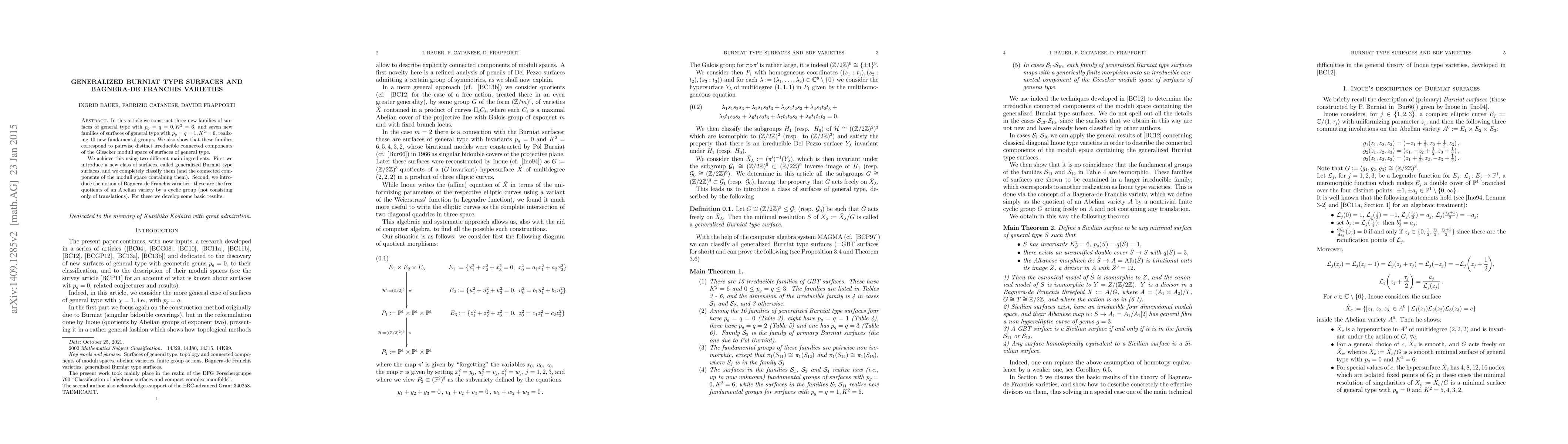 In this article we construct three new families of surfaces of general type with p_g = q = 0,K^2 = 6, and seven new families of surfaces of general type with p_g = q = 1, K^2 = 6, realizing 10 new fundamental groups. We also show that these families correspond to pairwise distinct irreducible connected components of the Gieseker moduli space of surfaces of general type. We achieve this using two different main ingredients. First we introduce a new class of surfaces, called generalized Burniat type surfaces, and we completely classify them (and the connected com- ponents of the moduli space containing them). Second, we introduce the notion of Bagnera-de Franchis varieties: these are the free quotients of an Abelian variety by a cyclic group (not consisting only of translations). For these we develop some basic results.