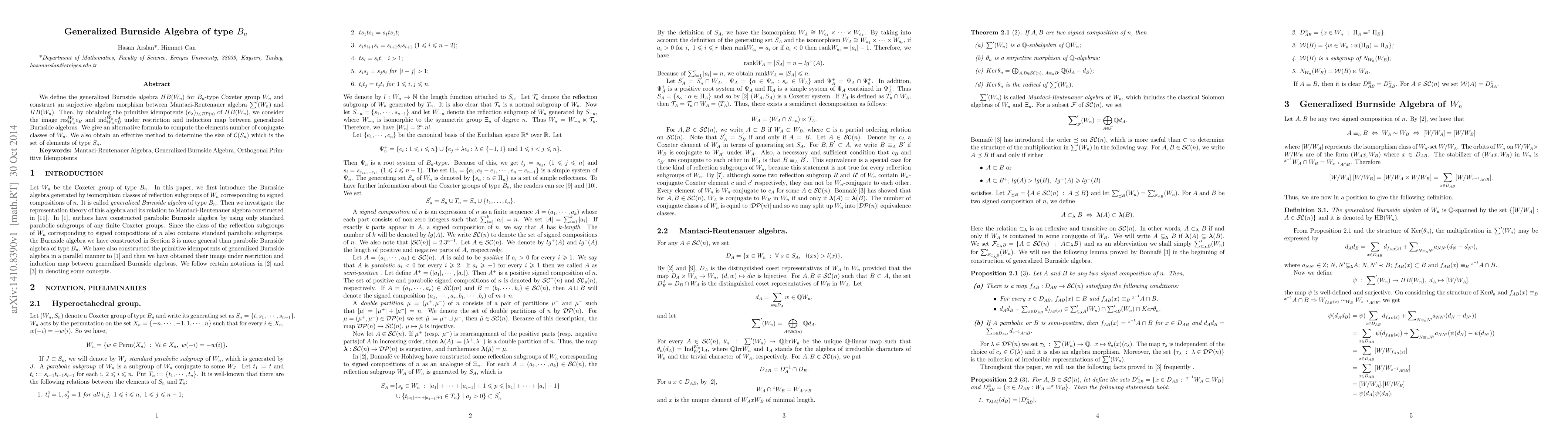 This research paper explores the generalized Burnside algebra of type B_n, establishing a connection between it and the Mantaci-Reutenauer algebra, and providing alternative formulas for counting conjugate classes and determining set sizes.