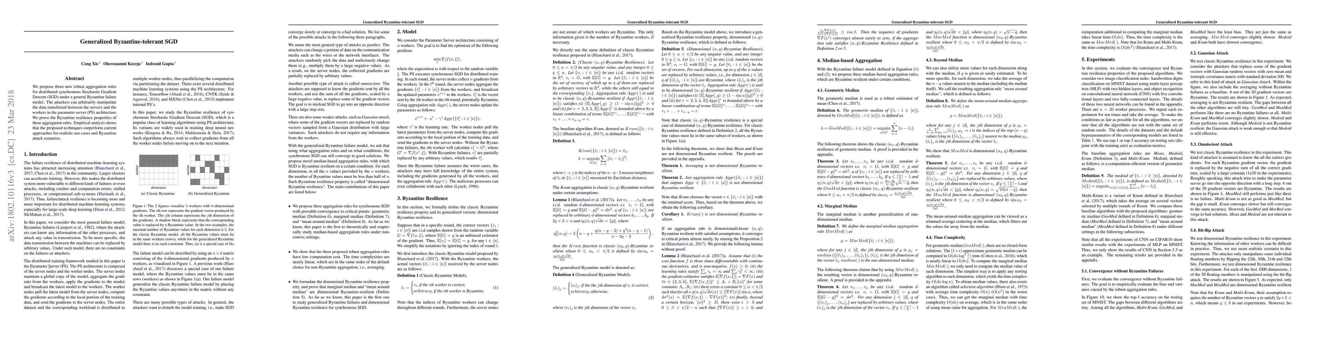 This paper introduces three novel robust aggregation rules for distributed Stochastic Gradient Descent (SGD) under a general Byzantine failure model, demonstrating their Byzantine resilience and superior performance over existing methods in both realistic and adversarial scenarios.