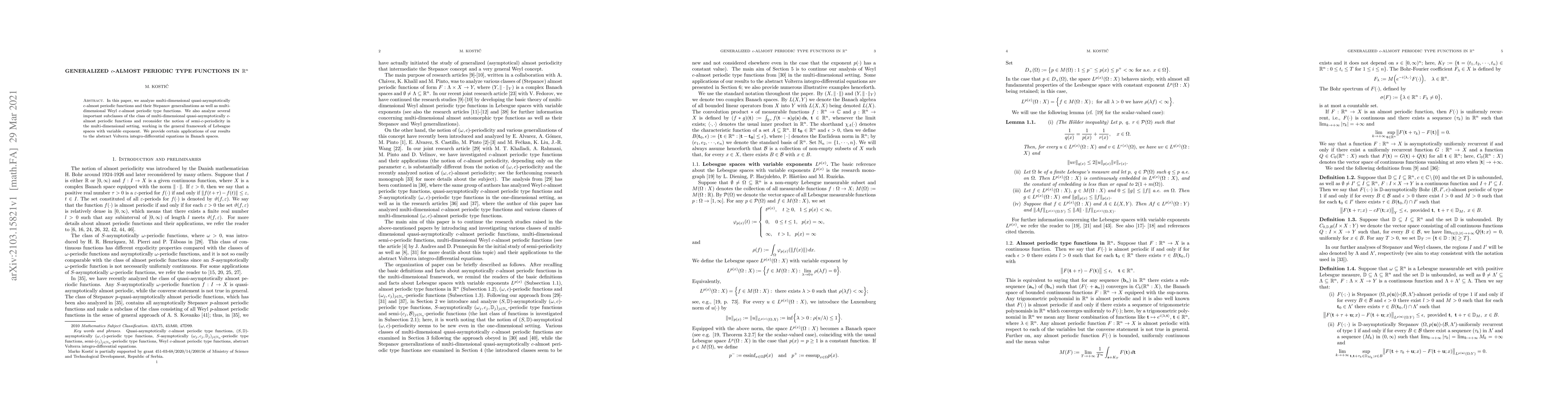 This paper investigates multi-dimensional quasi-asymptotically $c$-almost periodic functions, their Stepanov generalizations, and Weyl $c$-almost periodic type functions, analyzing subclasses and semi-$c$-periodicity in Lebesgue spaces with variable exponents. Applications to abstract Volterra integro-differential equations in Banach spaces are also presented.