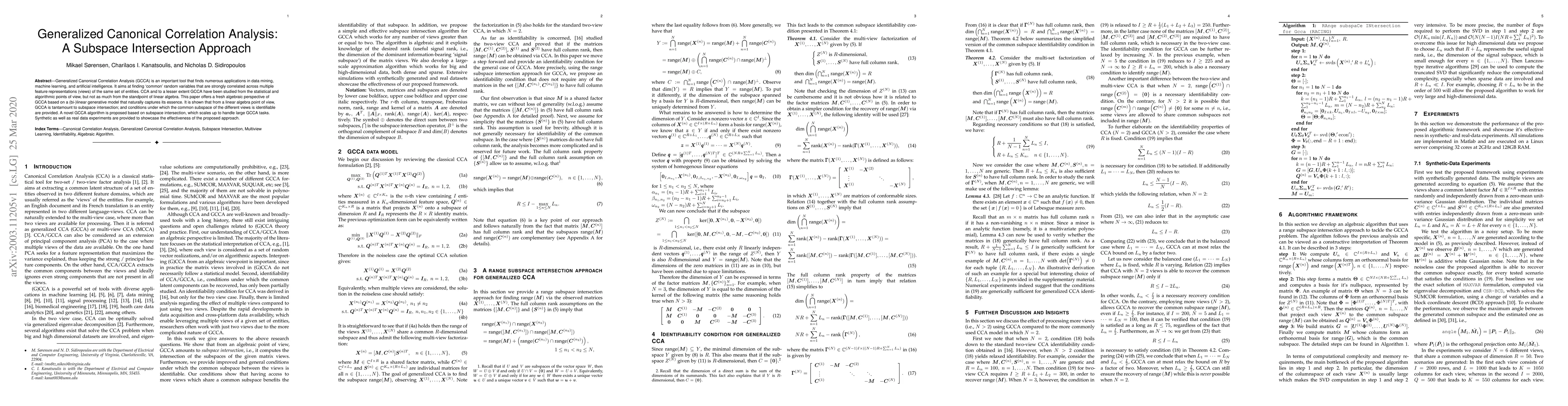 This paper presents a novel algebraic perspective on Generalized Canonical Correlation Analysis (GCCA), showing it is equivalent to subspace intersection and providing conditions for identifying the common subspace across multiple views. A new algorithm is proposed based on this approach, which scales up to handle large GCCA tasks.