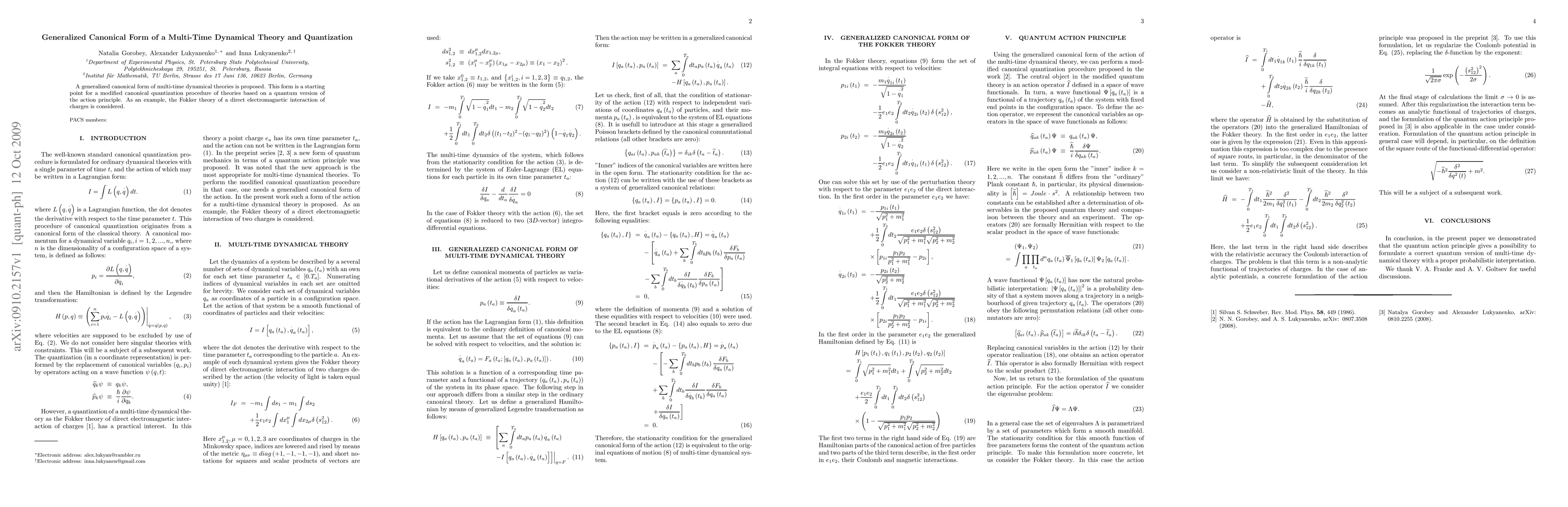 Summary: The paper proposes a generalized canonical form for multi-time dynamical theories, which serves as a foundation for a modified canonical quantization procedure. An example application to the Fokker theory of direct electromagnetic interactions between charges is provided.