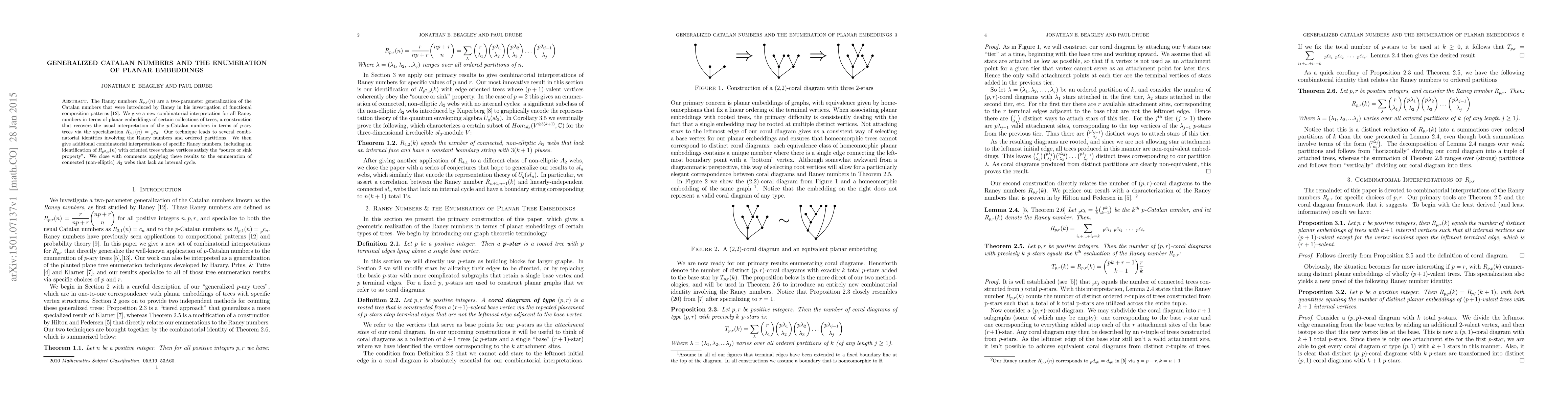 The Raney numbers $R_{p,r}(n)$ are a two-parameter generalization of the Catalan numbers that were introduced by Raney in his investigation of functional composition patterns \cite{Raney}. We give a new combinatorial interpretation for all Raney numbers in terms of planar embeddings of certain collections of trees, a construction that recovers the usual interpretation of the $p$-Catalan numbers in terms of $p$-ary trees via the specialization $R_{p,1}(n) =_{p} c_n$. Our technique leads to several combinatorial identities involving the Raney numbers and ordered partitions. We then give additional combinatorial interpretations of specific Raney numbers, including an identification of $R_{p^2,p}(n)$ with oriented trees whose vertices satisfy the "source or sink property". We close with comments applying these results to the enumeration of connected (non-elliptic) $A_2$ webs that lack an internal cycle.