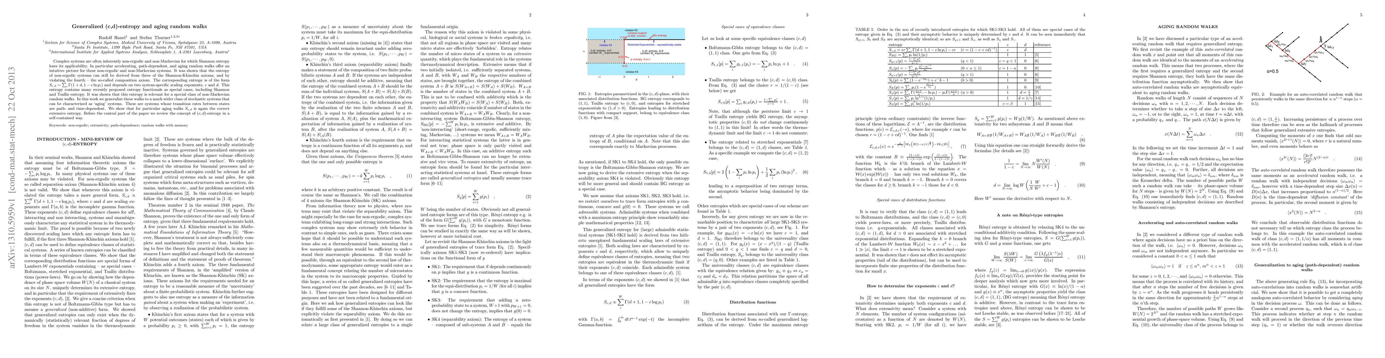 This paper generalizes $(c,d)$-entropy to analyze aging random walks in non-ergodic and non-Markovian systems, where transition rates depend on both path and time. It demonstrates that $(c,d)$-entropy, derived from Shannon-Khinchin axioms, is an appropriate measure for these complex systems.