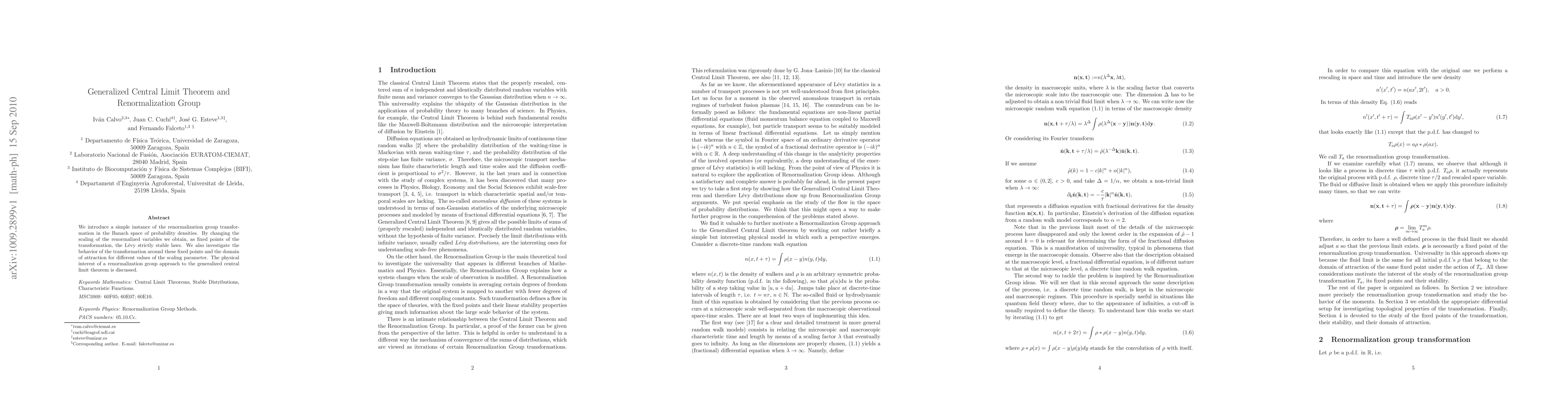 This paper explores a renormalization group transformation in the Banach space of probability densities, revealing L\'evy strictly stable laws as fixed points. It examines the behavior around these fixed points and discusses the physical implications for the generalized central limit theorem.