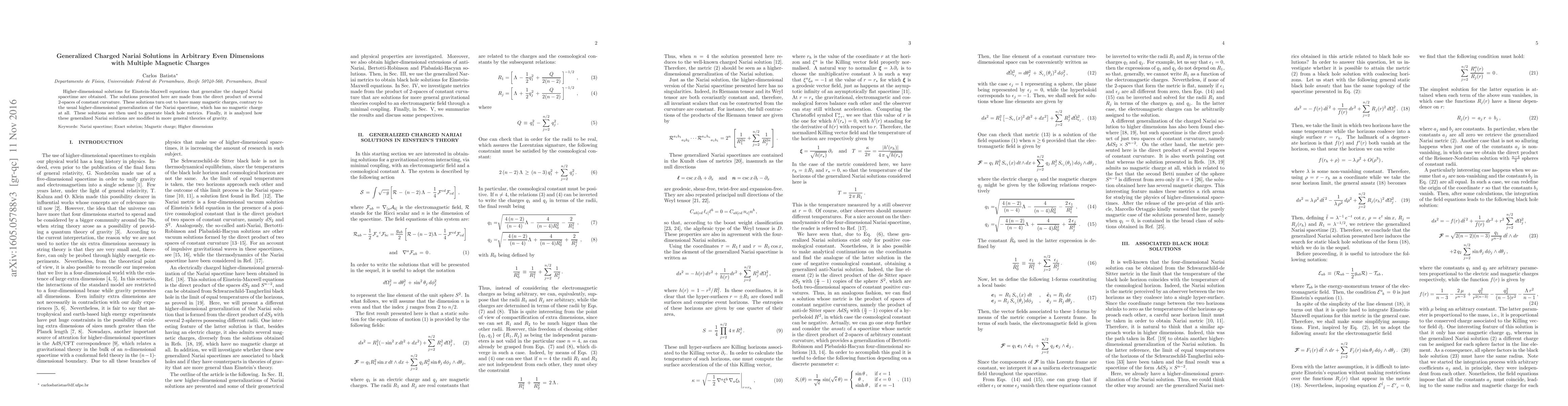 Higher-dimensional solutions for Einstein-Maxwell equations that generalize the charged Nariai spacetime are obtained. The solutions presented here are made from the direct product of several 2-spaces of constant curvature. These solutions turn out to have many magnetic charges, contrary to the usual higher-dimensional generalization of the Nariai spacetime, which has no magnetic charge at all. These solutions are then used to generate black hole metrics. Finally, it is analyzed how these generalized Nariai solutions are modified in more general theories of gravity.