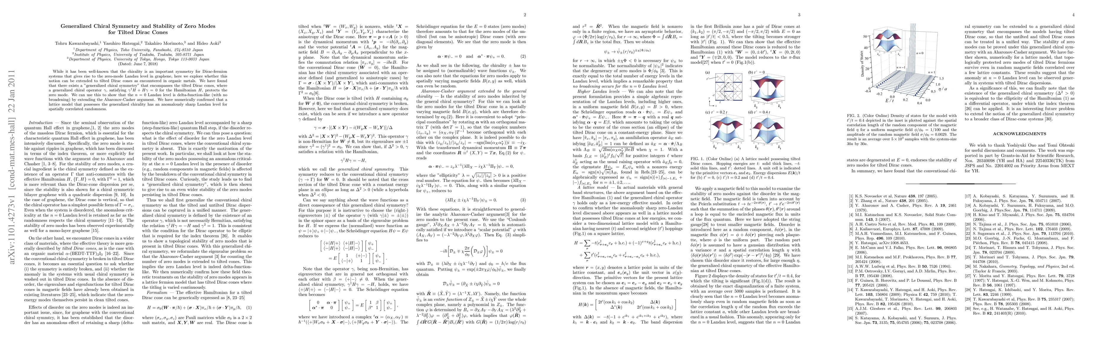 Summary: This paper explores the generalized chiral symmetry in tilted Dirac cones found in organic metals, showing that a generalized chiral operator protects zero modes. Numerical results confirm the anomalously sharp $n=0$ Landau level in lattice models with this symmetry.