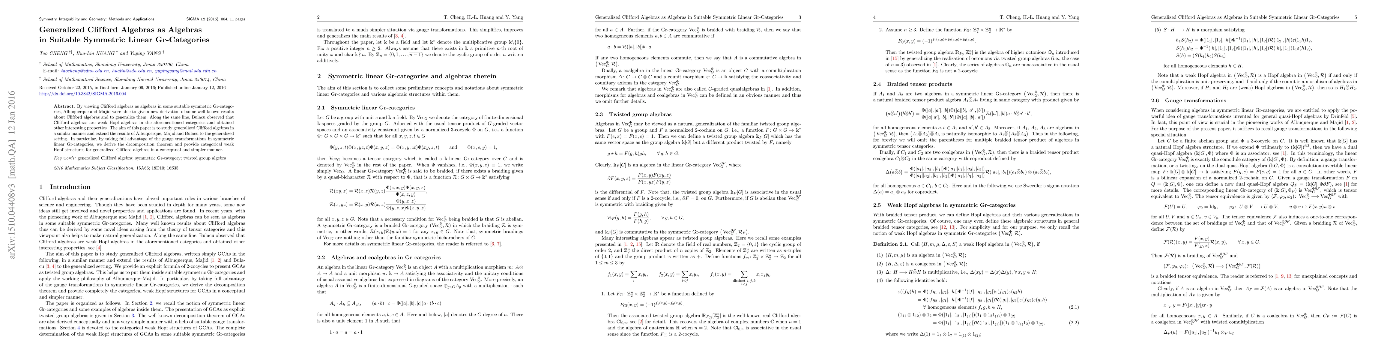 This paper extends the results of Albuquerque, Majid, and Bulacu on Clifford algebras by studying generalized Clifford algebras within suitable symmetric linear Gr-categories. It derives the decomposition theorem and provides categorical weak Hopf structures using gauge transformations, offering a simpler and more conceptual approach.