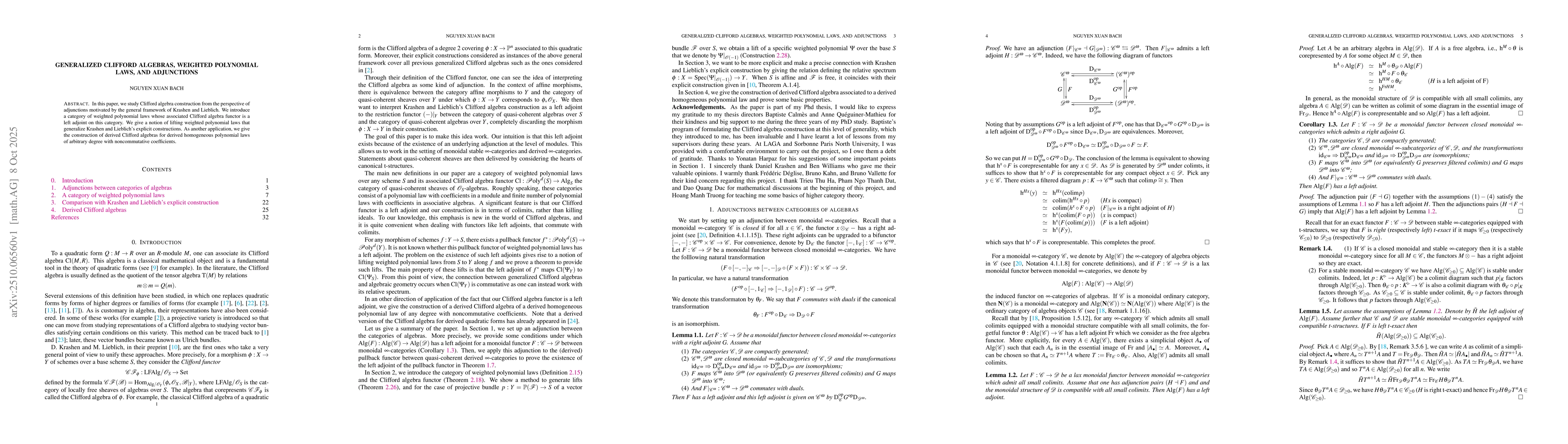 Developed a new construction of derived Clifford algebras using animated functors and cofibrant replacements, establishing key adjunctions and equivalences in the derived setting.
