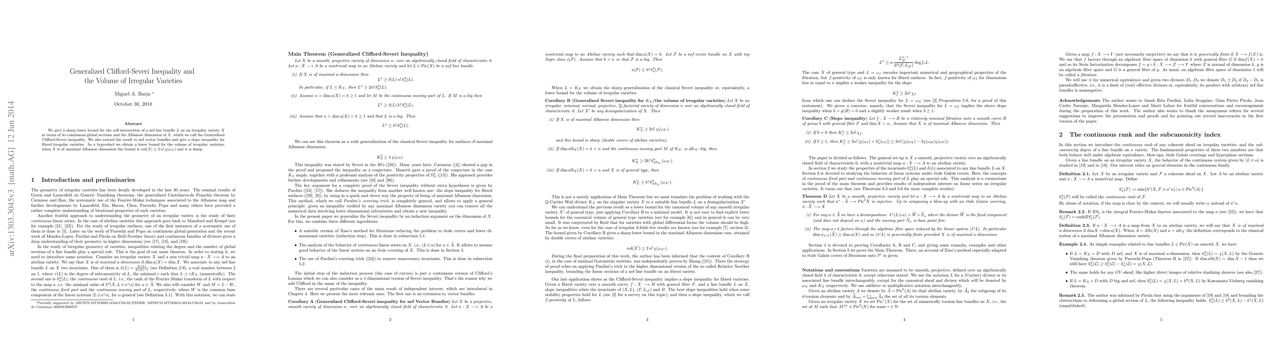 This paper establishes a Generalized Clifford-Severi inequality for the selfintersection of nef line bundles on irregular varieties, extending the result to nef vector bundles and providing a slope inequality for fibred irregular varieties. It also derives a sharp lower bound for the volume of irregular varieties, specifically $Vol(X) \geq 2 n! \chi\omega_X$.