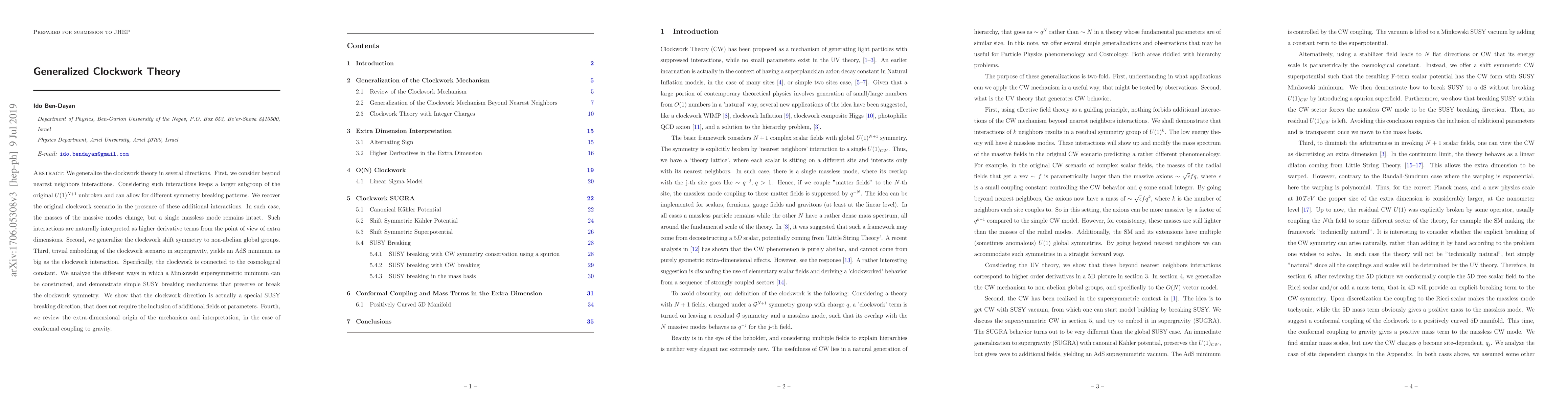 The paper generalizes the clockwork theory by extending beyond nearest neighbor interactions, incorporating non-abelian global shift symmetries, embedding the clockwork into supergravity to relate it to the cosmological constant, and analyzing supersymmetric constructions that preserve or break the clockwork symmetry without additional fields or parameters.