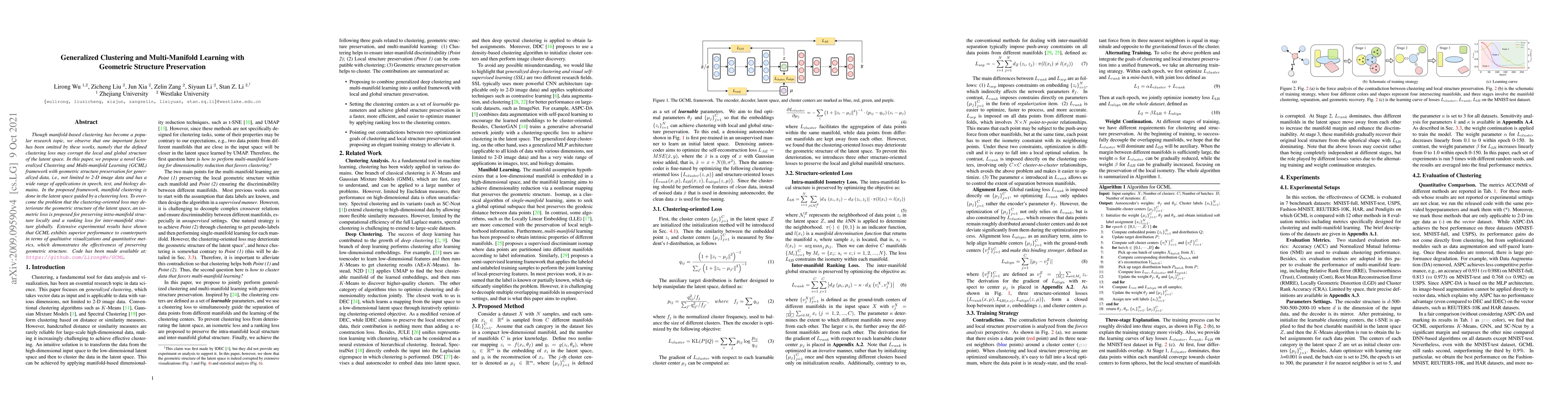 This paper introduces a Generalized Clustering and Multi-manifold Learning (GCML) framework that preserves the geometric structure of the latent space during clustering. It proposes an isometric loss for local structure preservation and a ranking loss for global structure, demonstrating superior performance across various data domains.