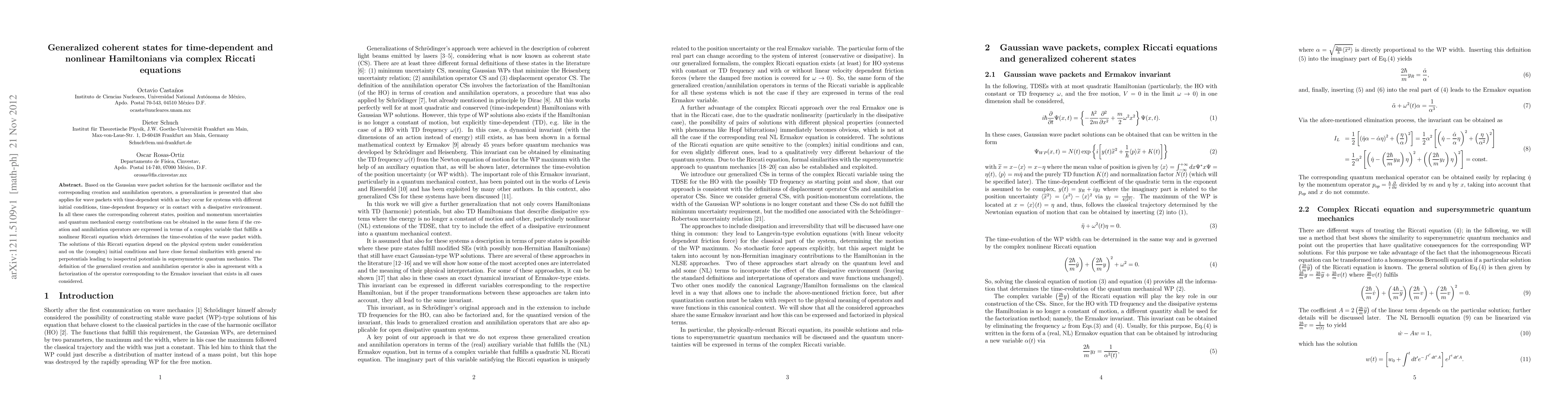 Researchers developed a method to create generalized coherent states for various physical systems, including those with time-dependent conditions and nonlinear Hamiltonians, using complex Riccati equations.