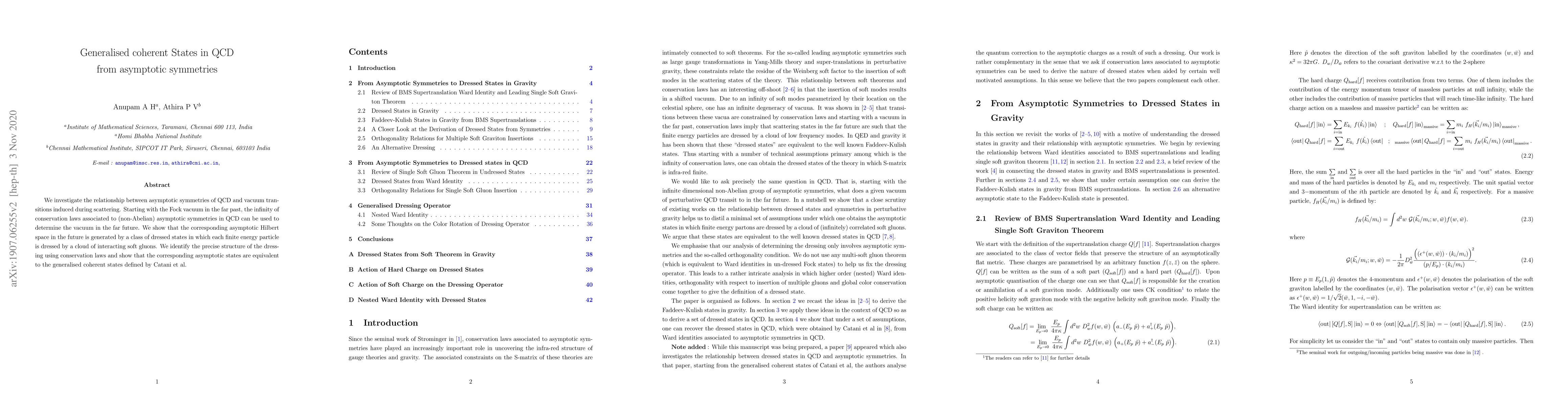 This paper explores the connection between QCD's asymptotic symmetries and vacuum transitions in scattering processes, demonstrating that the vacuum in the far future is determined by conservation laws from these symmetries. The study identifies the asymptotic Hilbert space as generated by dressed states of finite energy particles, which correspond to generalized coherent states.