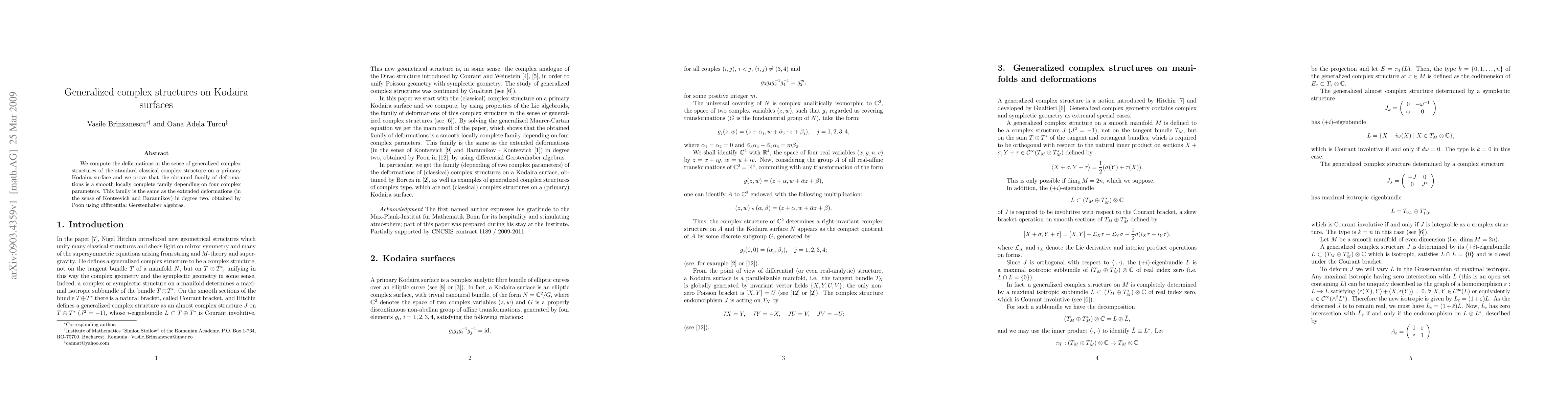 This paper computes the deformations of the classical complex structure on a primary Kodaira surface via generalized complex structures, demonstrating that these deformations form a smooth, locally complete family parameterized by four complex parameters, aligning with extended deformations obtained by Poon.