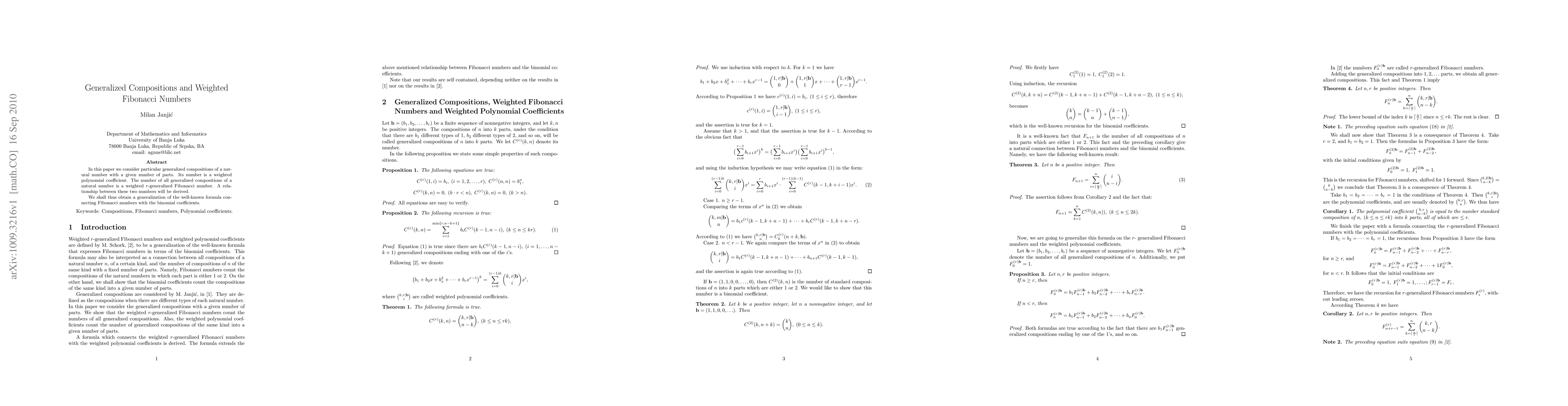 The paper introduces and analyzes generalized compositions and weighted Fibonacci numbers, providing recursion formulas and proving a theorem that generalizes the relationship between Fibonacci numbers and binomial coefficients.