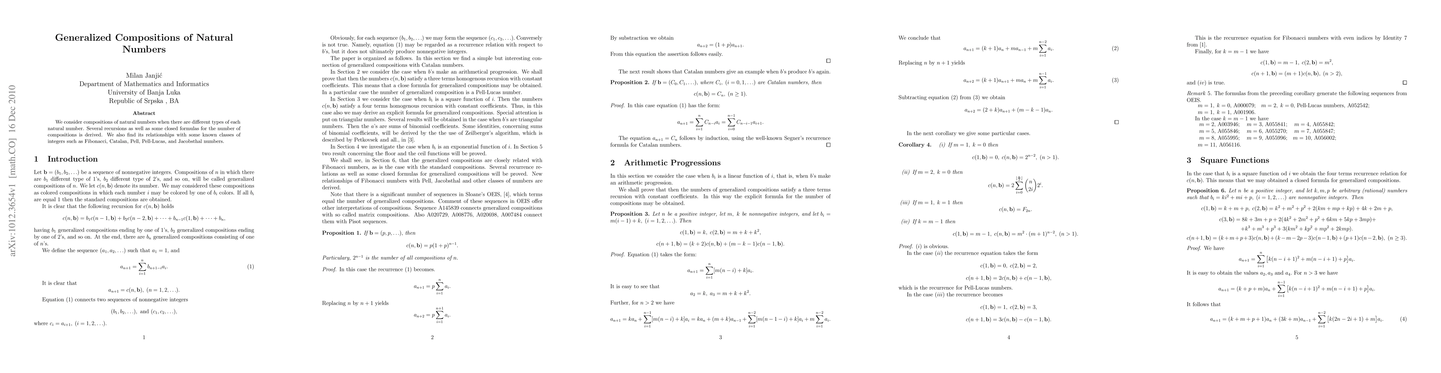 We consider compositions of natural numbers when there are different types of each natural number. Several recursions as well as some closed formulas for the number of compositions is derived. We also find its relationships with some known classes of integers such as Fibonacci, Catalan, Pell, Pell-Lucas, and Jacobsthal numbers.