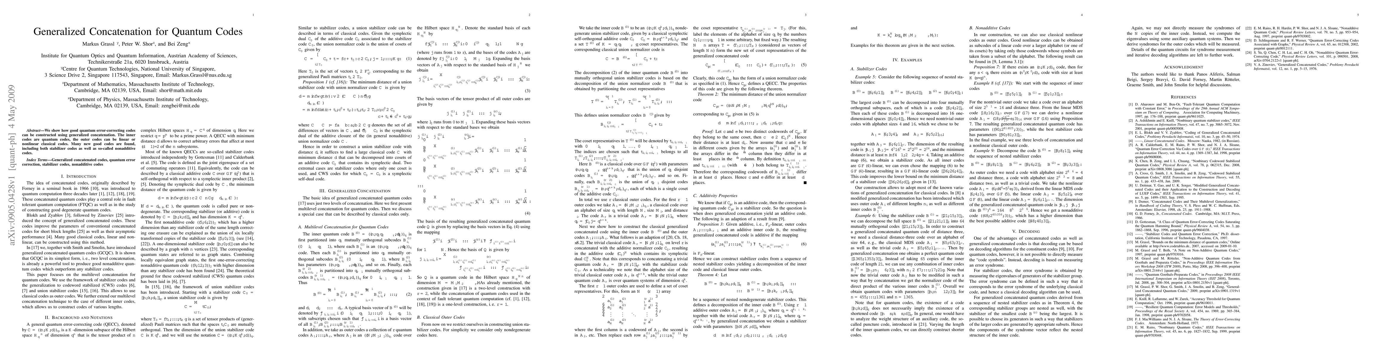 This paper demonstrates the construction of effective quantum error-correcting codes via generalized concatenation, combining quantum codes with either linear or nonlinear classical codes, resulting in numerous new good codes, including stabilizer and nonadditive codes.