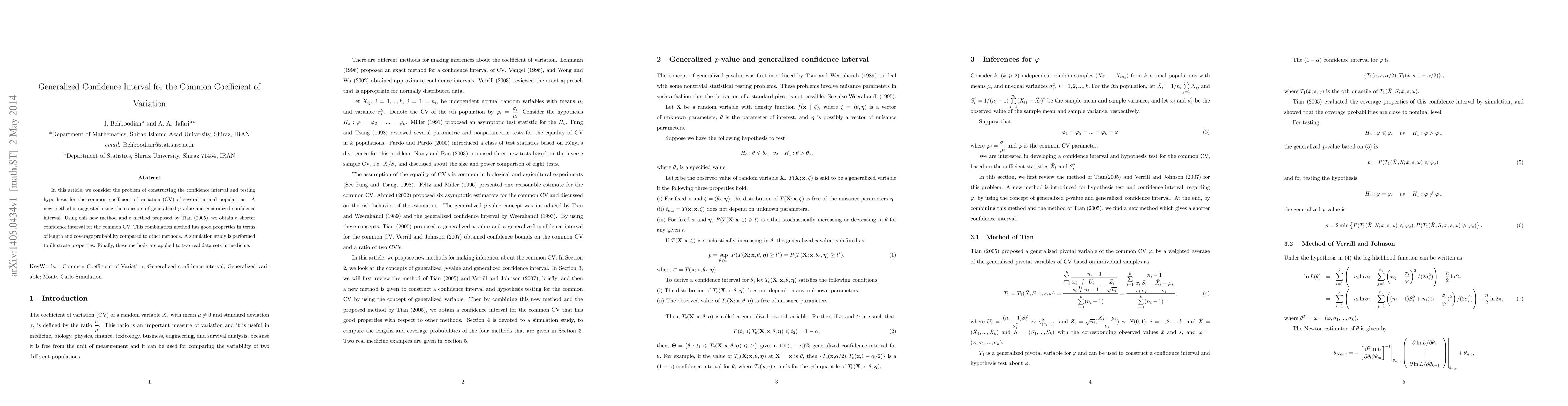 A new method for constructing confidence intervals for the common coefficient of variation (CV) across multiple normal populations is proposed, offering improved length and coverage probability compared to existing methods.