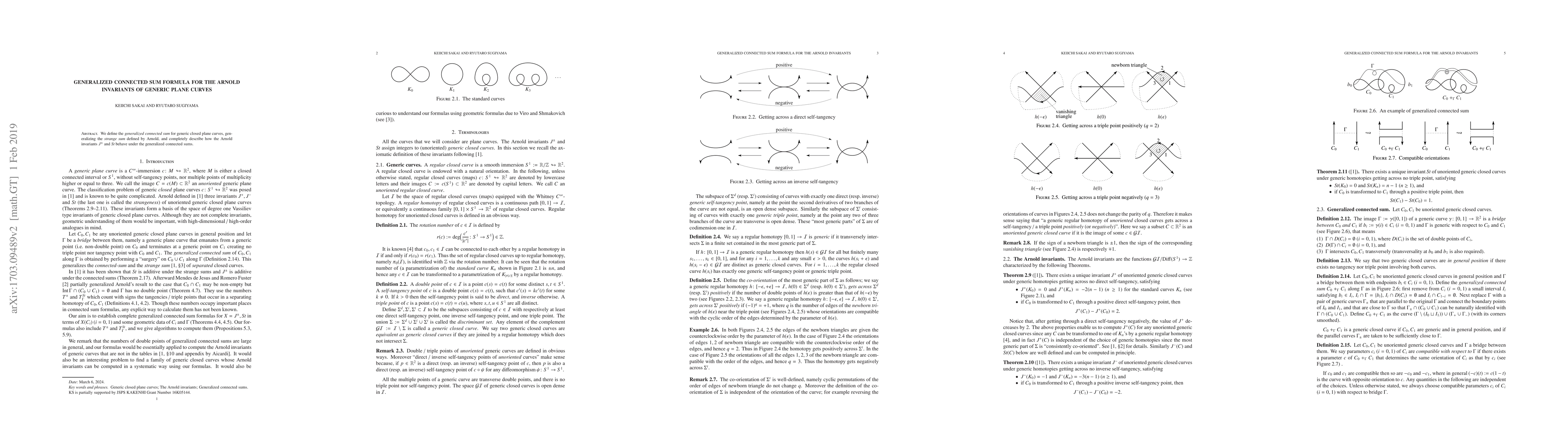 We define the generalized connected sum for generic closed plane curves, generalizing the strange sum defined by Arnold, and completely describe how the Arnold invariants $J^{\pm}$ and $\mathit{St}$ behave under the generalized connected sums.