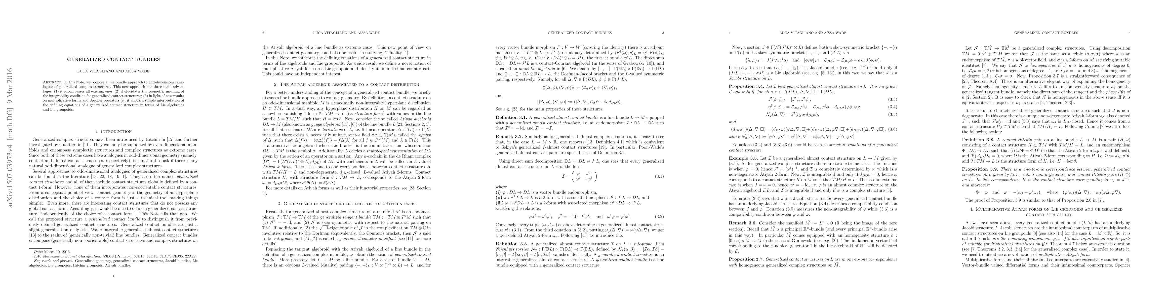 In this Note, we propose a line bundle approach to odd-dimensional analogues of generalized complex structures. This new approach has three main advantages: (1) it encompasses all existing ones; (2) it elucidates the geometric meaning of the integrability condition for generalized contact structures; (3) in light of new results on multiplicative forms and Spencer operators, it allows a simple interpretation of the defining equations of a generalized contact structure in terms of Lie algebroids and Lie groupoids.