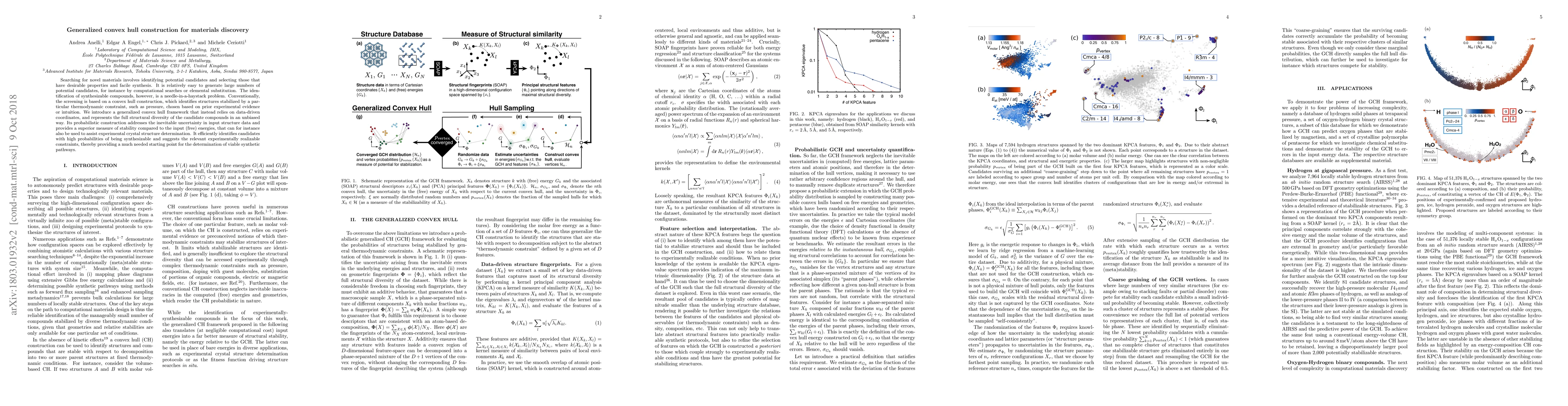 The paper introduces a generalized convex hull framework to improve high-throughput computational materials discovery by constructing convex hulls on data-driven principal coordinates, reducing bias and uncertainty, and providing a more reliable set of synthesizable compounds. This method helps eliminate redundant structures and pinpoint conditions likely to stabilize given configurations.