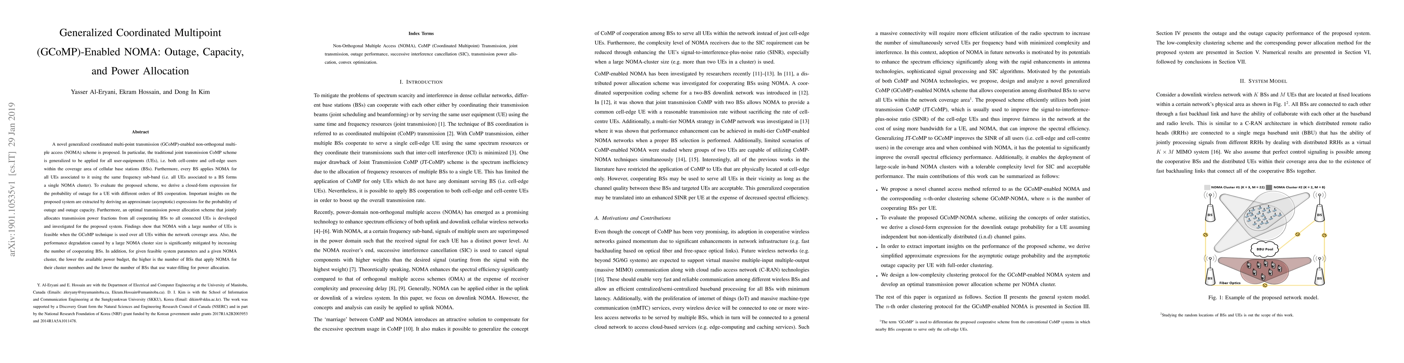 A new scheme combining Generalized Coordinated Multipoint (GCoMP) with Non-Orthogonal Multiple Access (NOMA) improves network capacity and reduces outage, particularly when serving a large number of users with multiple base stations.