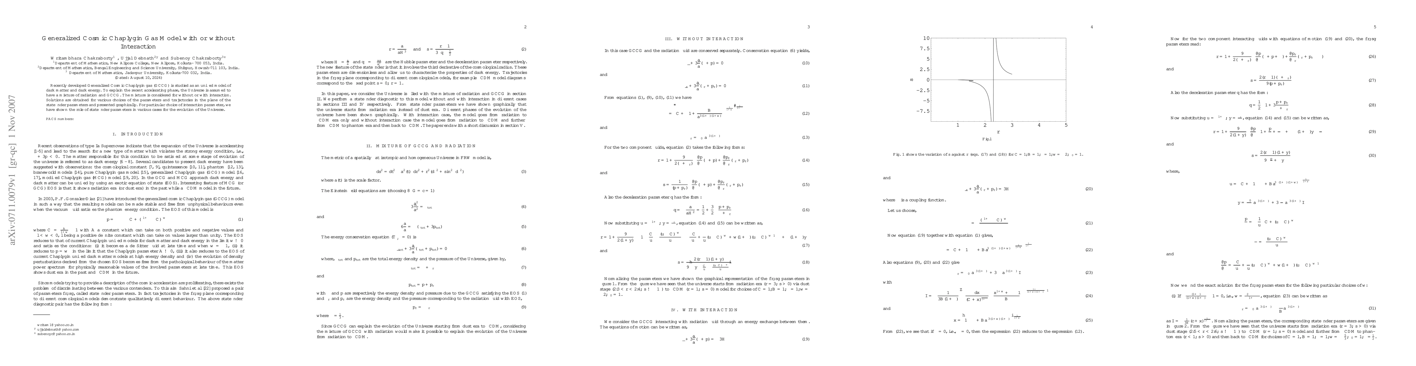 This paper investigates the Generalized Cosmic Chaplygin Gas (GCCG) as a unified model for dark matter and dark energy, exploring both interacting and non-interacting scenarios. It provides solutions and graphical representations of statefinder parameters to analyze the evolution of the Universe during its accelerating phase.