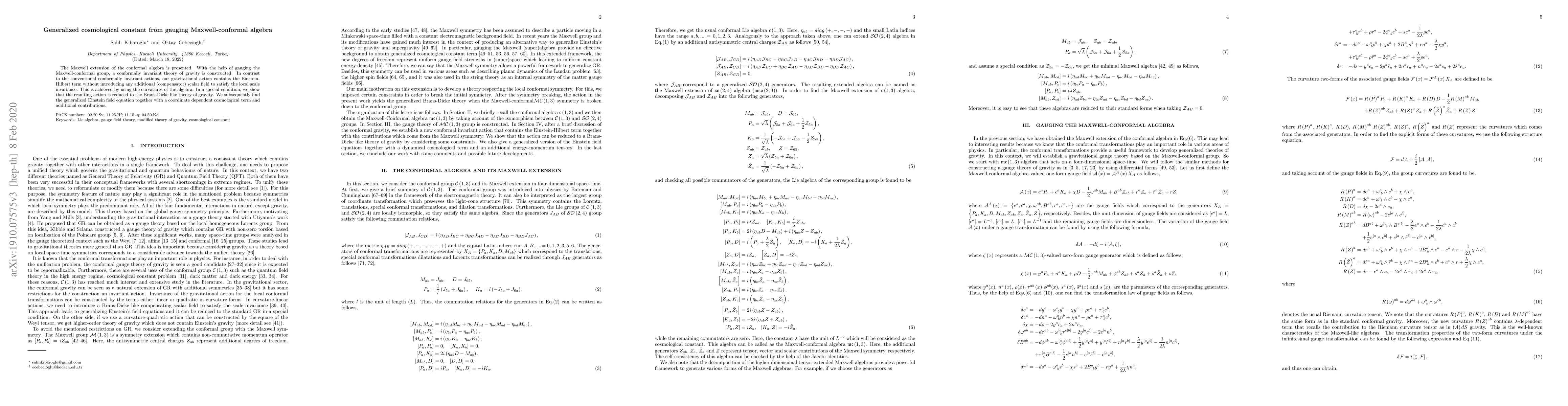 This paper constructs a conformally invariant theory of gravity by gauging the Maxwell-conformal algebra, incorporating the Einstein-Hilbert term without introducing a scalar field, and derives a generalized Einstein field equation with a coordinate-dependent cosmological constant.