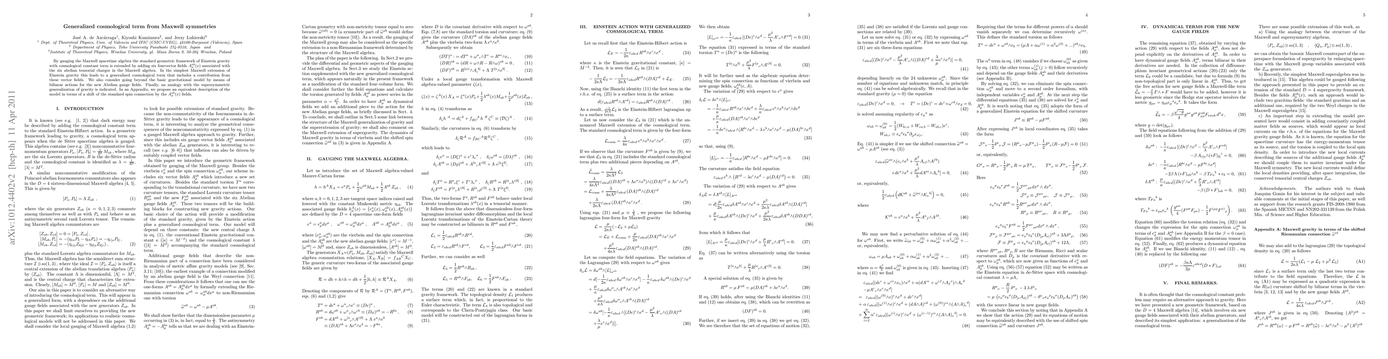 This paper extends Einstein gravity with a cosmological constant by gauging the Maxwell spacetime algebra, introducing six fourvector fields linked to abelian tensorial charges. This results in a generalized cosmological term incorporating contributions from these vector fields, and explores potential extensions through bilinear actions for the new gauge fields, drawing parallels to supersymmetric gravity.