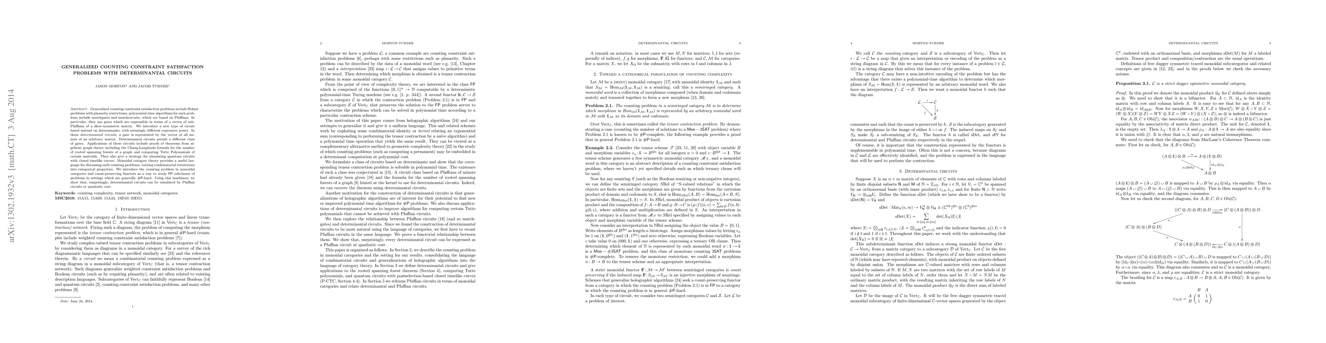 This paper introduces determinantal circuits for generalized counting constraint satisfaction problems, contrasting them with Pfaffian-based matchgates. It demonstrates their applications in algebraic graph theory and quantum circuit simulation, and shows that they can be simulated by Pfaffian circuits at a quadratic cost using monoidal category theory.