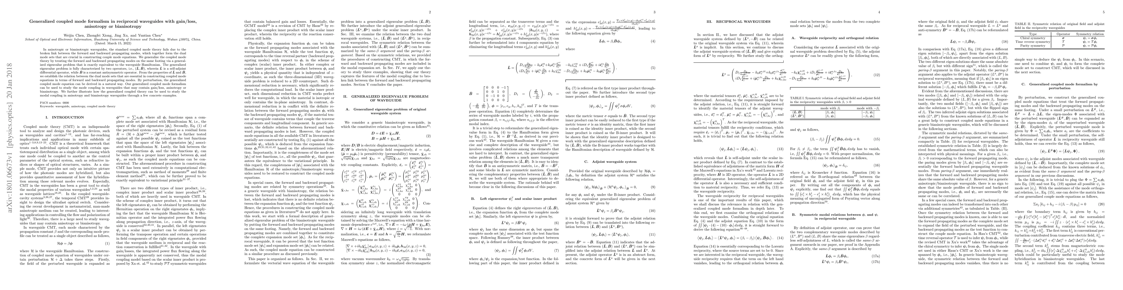 In anisotropic or bianisotropic waveguides, the standard coupled mode theory fails due to the broken link between the forward and backward propagating modes, which together form the dual mode sets that are crucial in constructing couple mode equations. We generalize the coupled mode theory by treating the forward and backward propagating modes on the same footing via a generalized eigenvalue problem that is exactly equivalent to the waveguide Hamiltonian. The generalized eigenvalue problem is fully characterized by two operators, i.e., $( \bar{\bm{L}},\bar{\bm{B}})$, wherein $\bar{\bm{L}}$ is a self-adjoint differential operator, while $\bar{\bm{B}}$ is a constant antisymmetric operator. From the properties of $\bar{\bm{L}}$ and $\bar{\bm{B}}$, we establish the relation between the dual mode sets that are essential in constructing coupled mode equations in terms of forward and backward propagating modes. By perturbation, the generalized coupled mode equation can be derived in a natural way. Our generalized coupled mode formalism can be used to study the mode coupling in waveguides that may contain gain/loss, anisotropy or bianisotropy. We further illustrate how the generalized coupled theory can be used to study the modal coupling in anisotropy and bianisotropy waveguides through a few concrete examples.