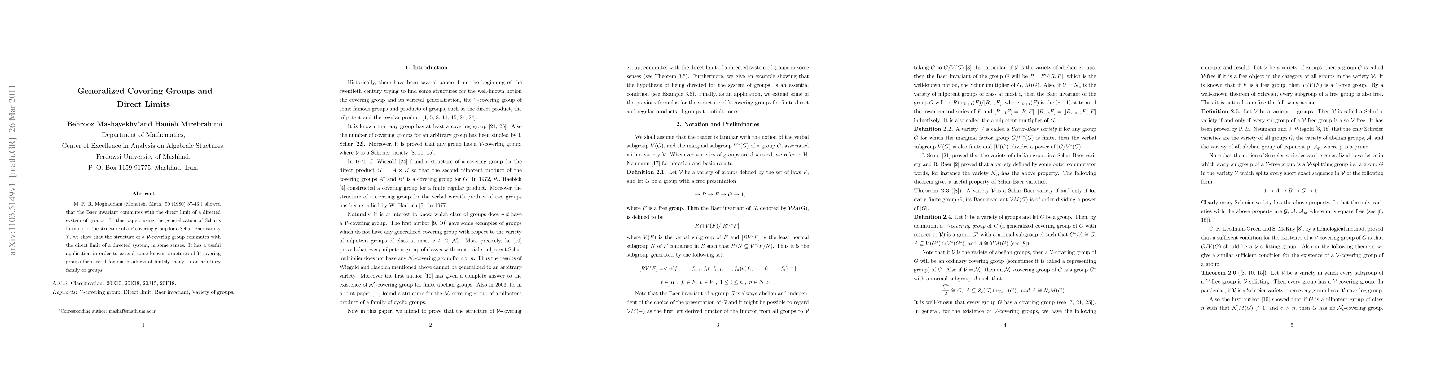 This paper generalizes Schur's formula for $\mathcal{V}$-covering groups and demonstrates that the structure of such groups commutes with direct limits in certain contexts. This generalization allows for extending known structures of $\mathcal{V}$-covering groups to an arbitrary family of groups.
