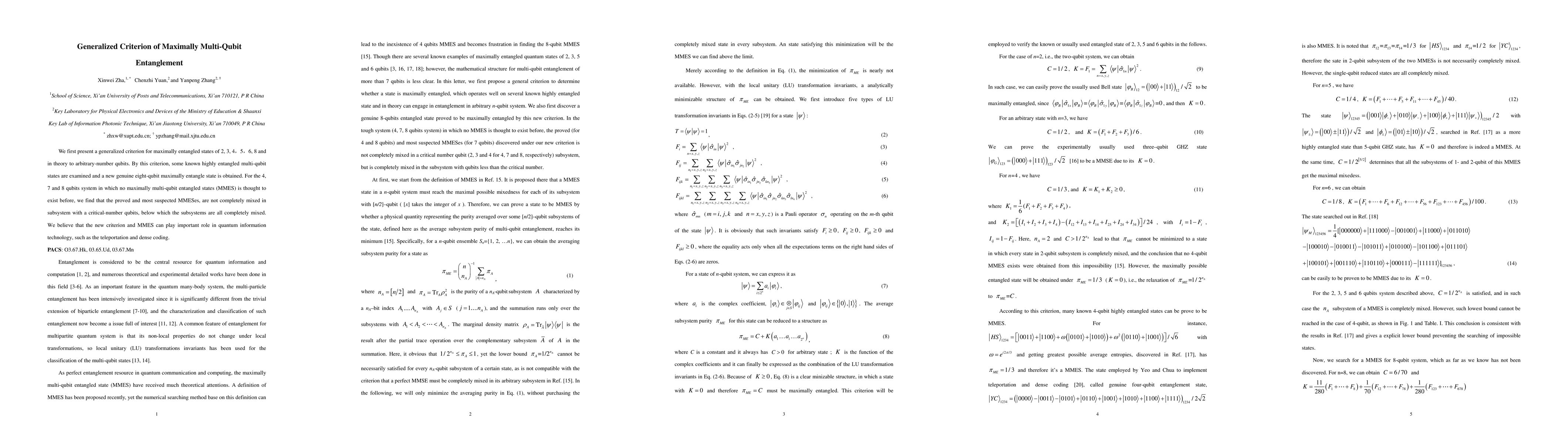 This paper introduces a generalized criterion for identifying maximally entangled states of qubits ranging from 2 to 8, and potentially any number theoretically. It verifies the criterion on known states and discovers a new eight-qubit maximally entangled state, while also revealing that previously suspected maximally entangled states for 4, 7, and 8 qubits are not entirely mixed below a critical subsystem size.