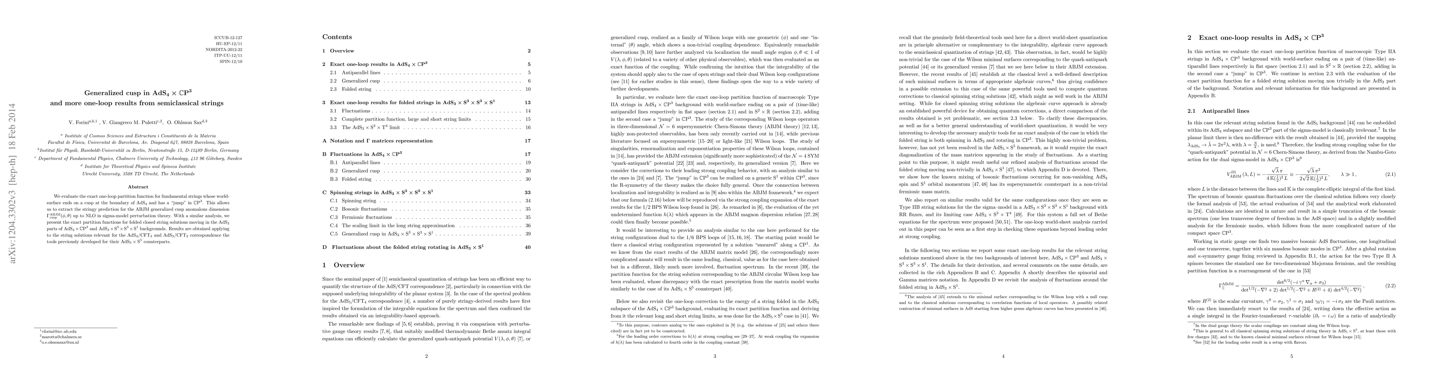 This paper calculates the exact one-loop partition function for strings ending on a cusp in AdS_4 x CP^3, determining the generalized cusp anomalous dimension up to next-to-leading order. It also presents similar results for folded closed strings in AdS_3 backgrounds, utilizing methods developed for AdS_5 x S^5.