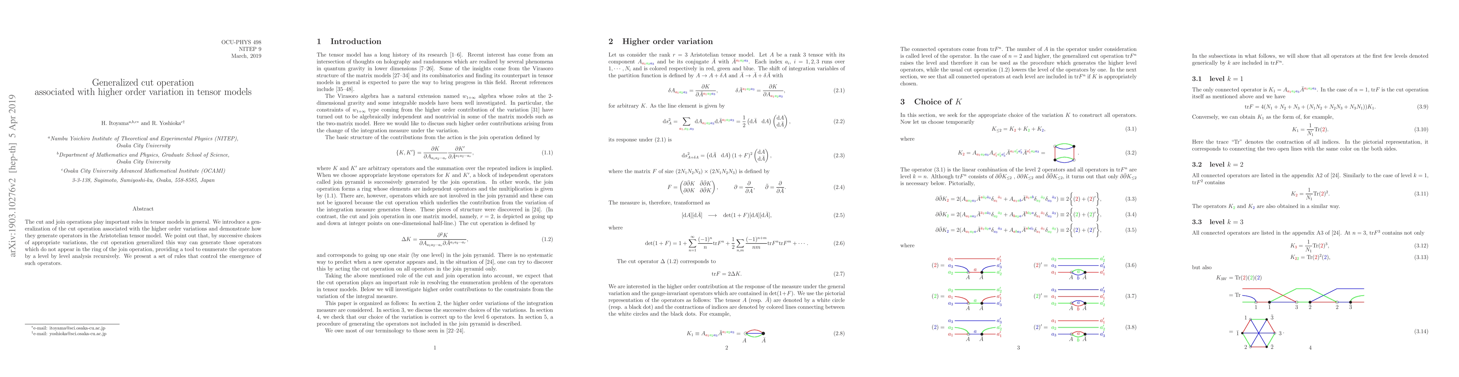 The cut and join operations play important roles in tensor models in general. We introduce a generalization of the cut operation associated with the higher order variations and demonstrate how they generate operators in the Aristotelian tensor model. We point out that, by successive choices of appropriate variations, the cut operation generalized this way can generate those operators which do not appear in the ring of the join operation, providing a tool to enumerate the operators by a level by level analysis recursively. We present a set of rules that control the emergence of such operators.